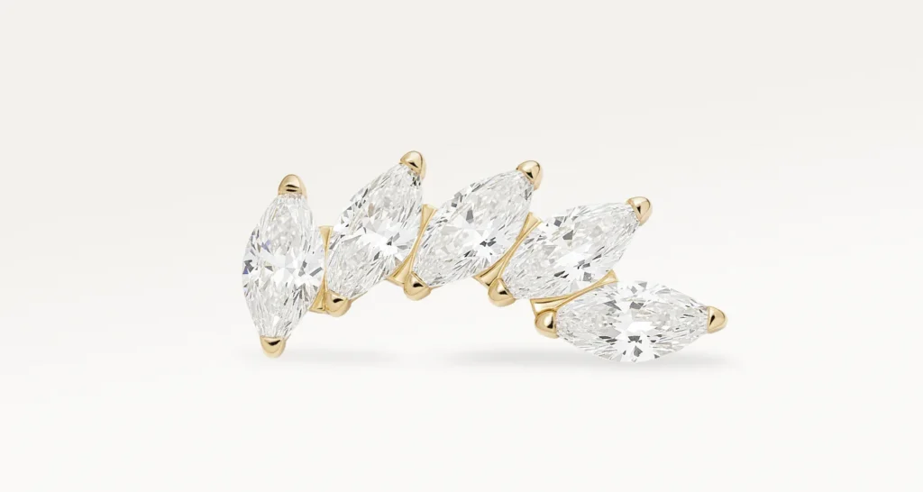 - Pierres : Cinq zircons 6A taille marquise, taillés pour refléter la lumière sous tous les angles et créer une brillance continue