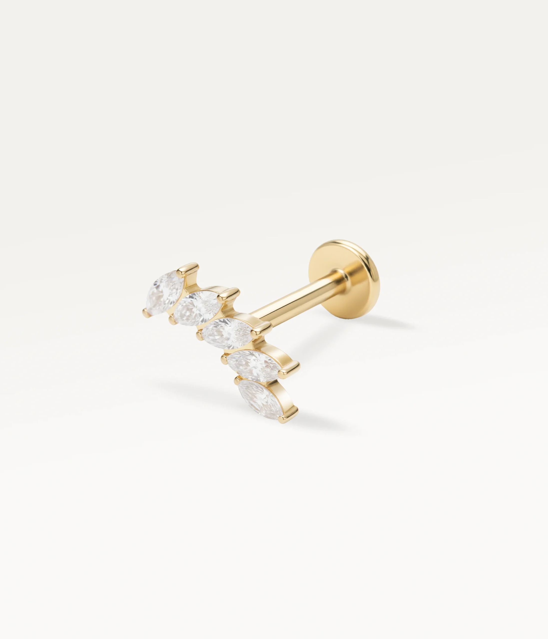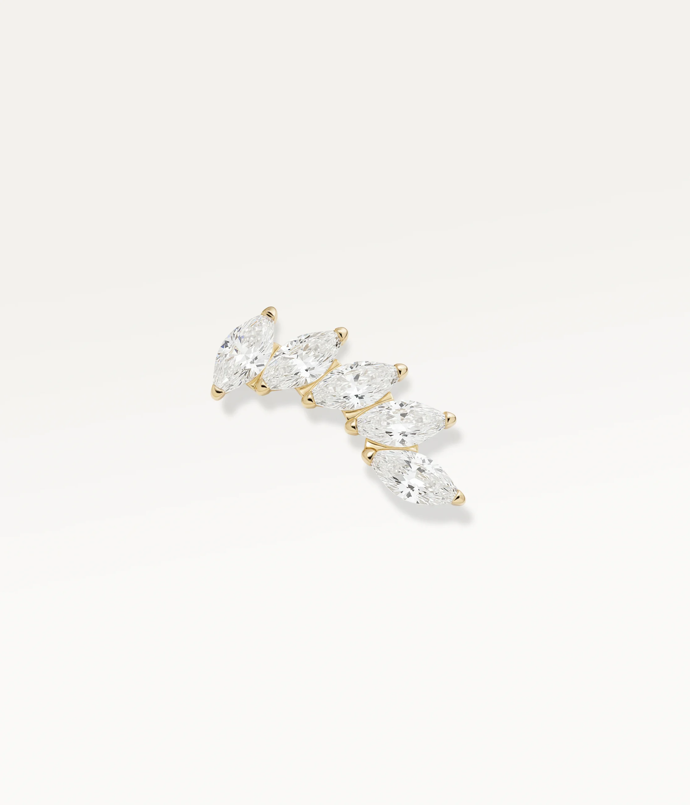 Avec sa silhouette allongée sertie de zircons marquises, Envolée épouse naturellement les formes arrondies de l’oreille. Sa ligne fluide suit la courbure du conch ou de l’hélix, créant un rendu harmonieux et lumineux.