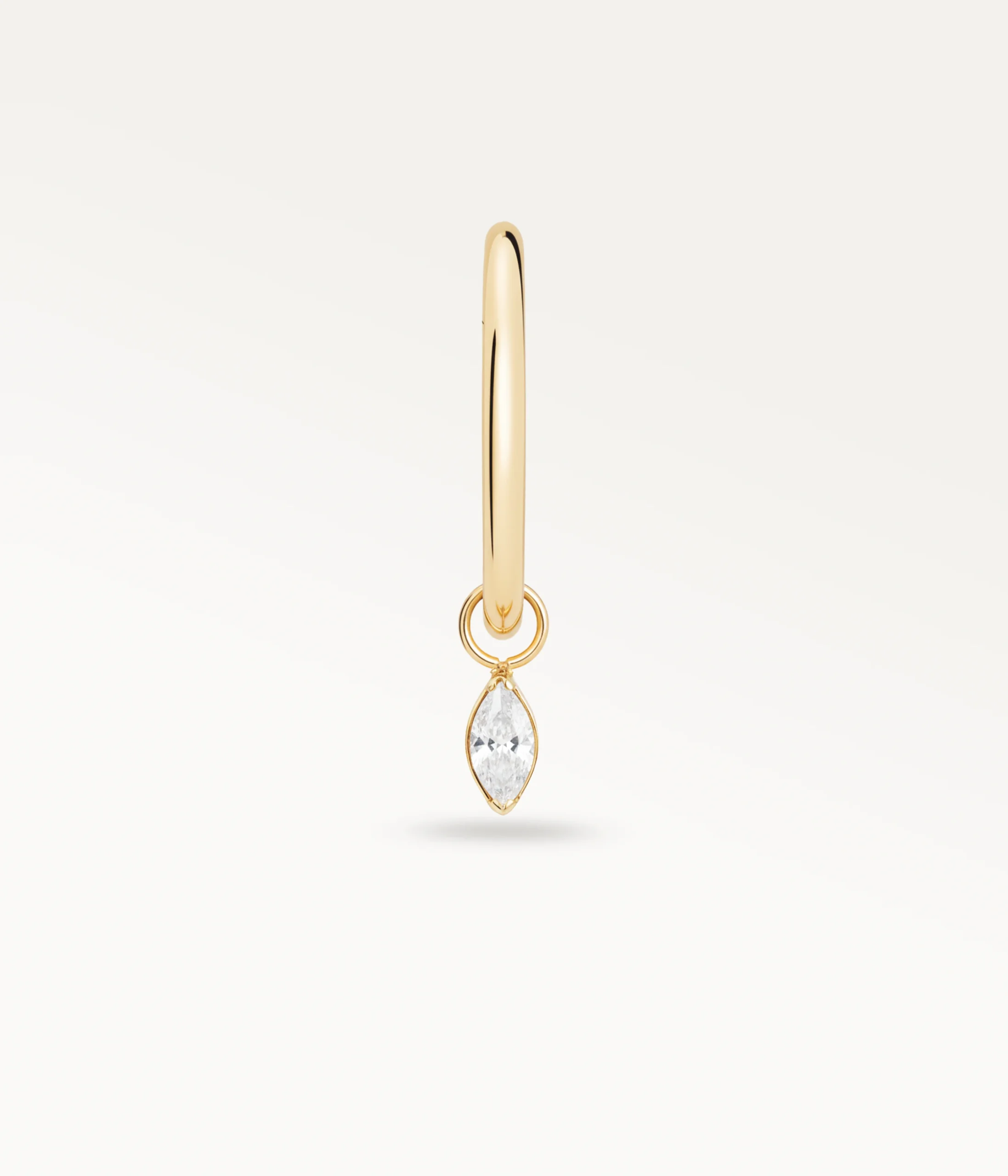 Un bijou tout en délicatesse : sa silhouette fine s’agrémente d’une pampille marquise qui capte la lumière à chaque mouvement. Léger, élégant, et subtilement mobile, il habille l’oreille avec une touche aérienne et précieuse.