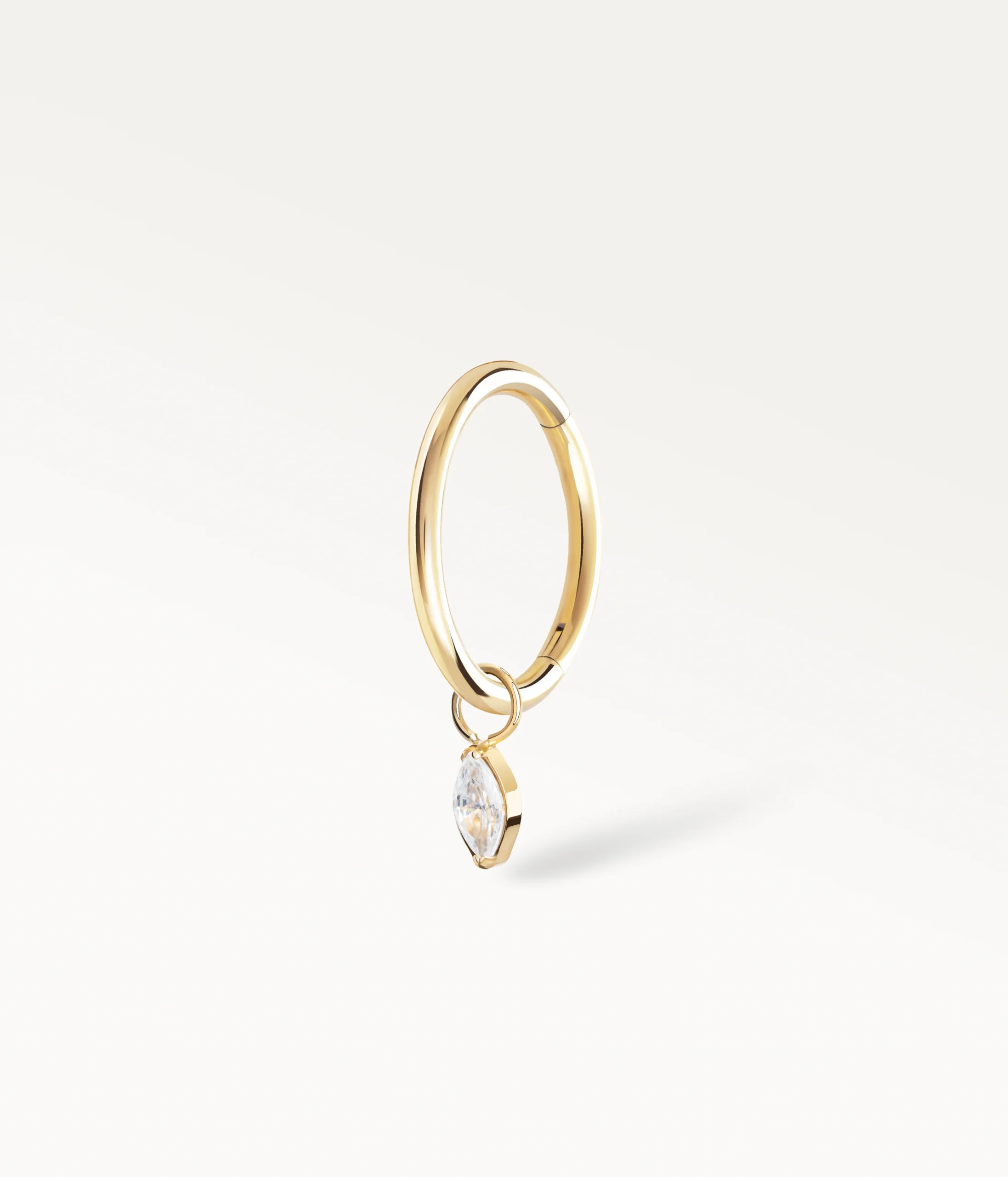 Anneau de piercing doré avec pendentif zircon en goutte, bijou raffiné et lumineuxNéréide – anneau piercing pendentif goutte