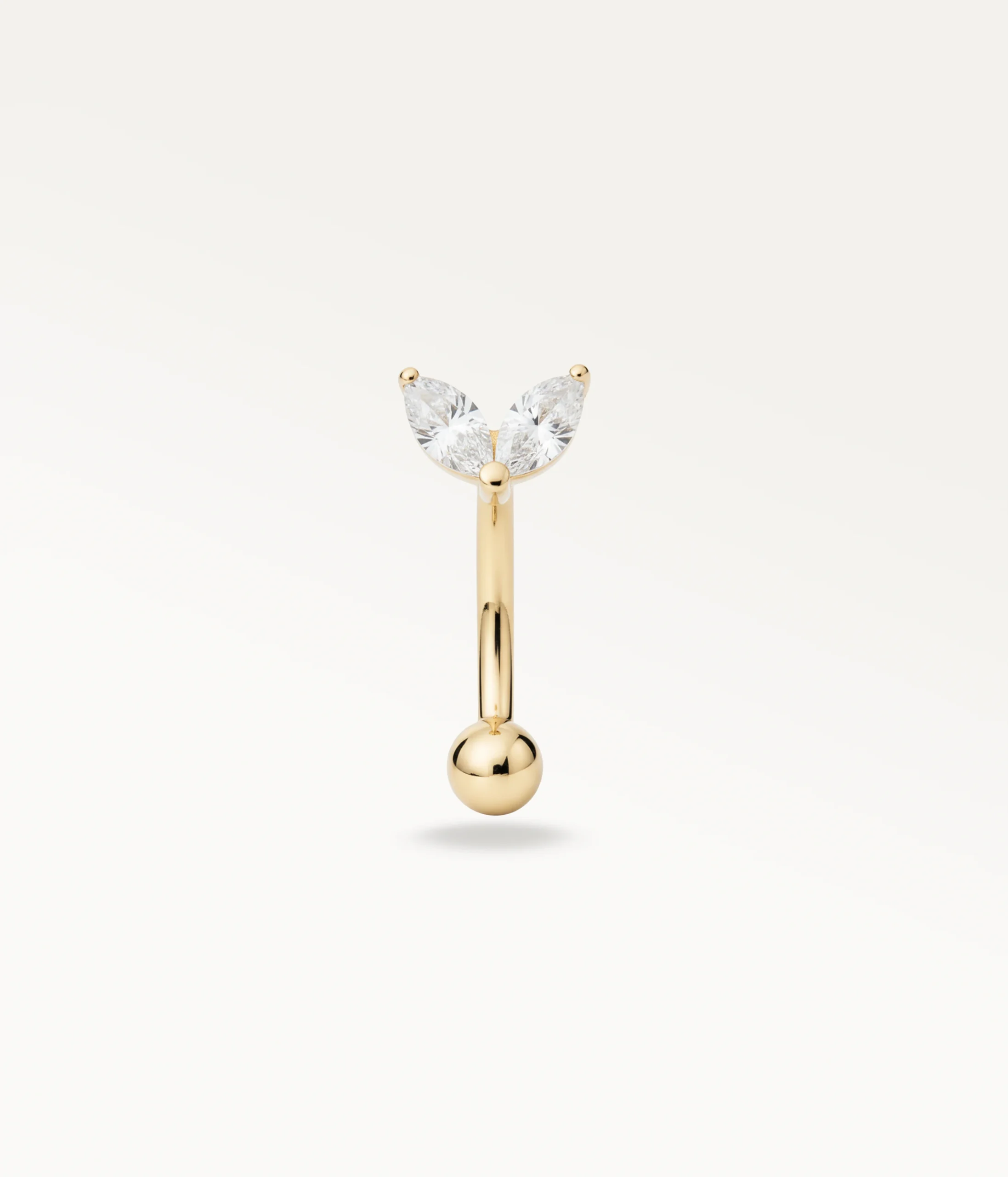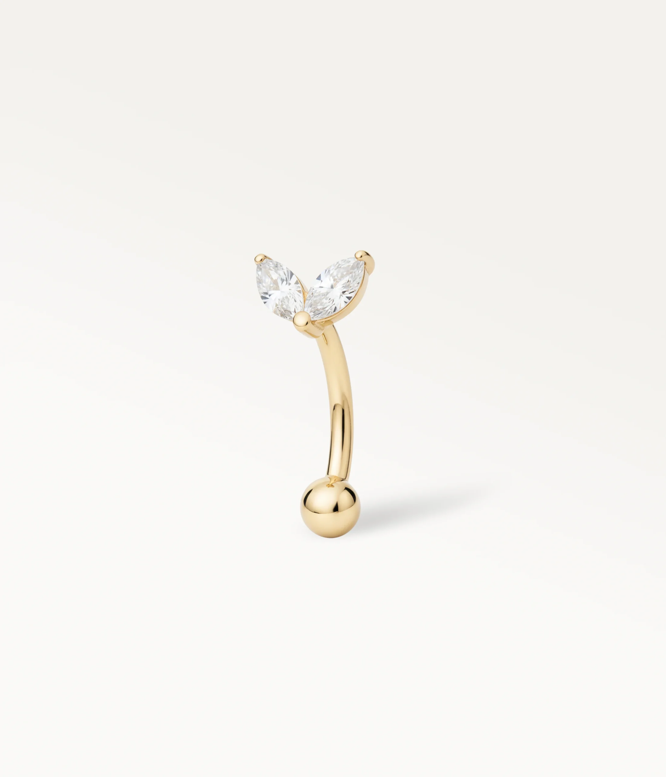 Athénais attire le regard par son design épuré : deux pierres taille marquise qui se rejoignent comme deux pétales délicats. Leur brillance met en valeur le centre de l’oreille tout en gardant une allure élégante. Sans trop la surcharger.