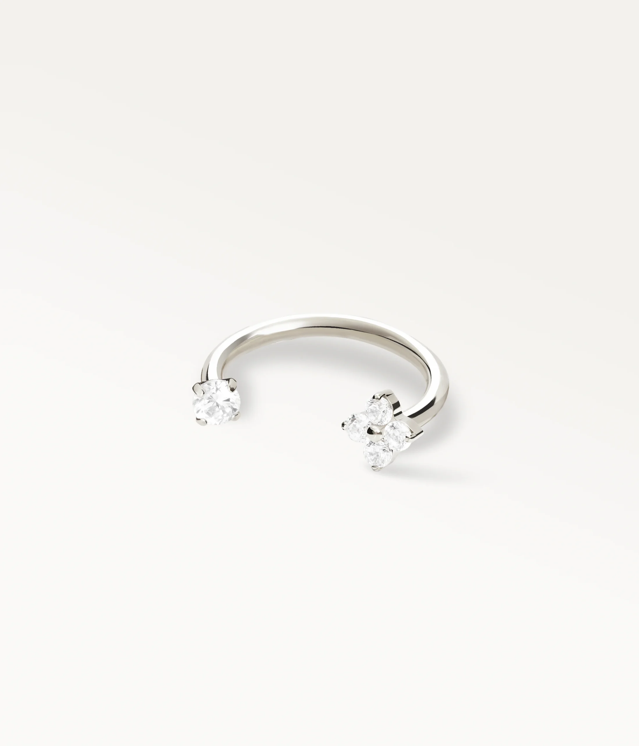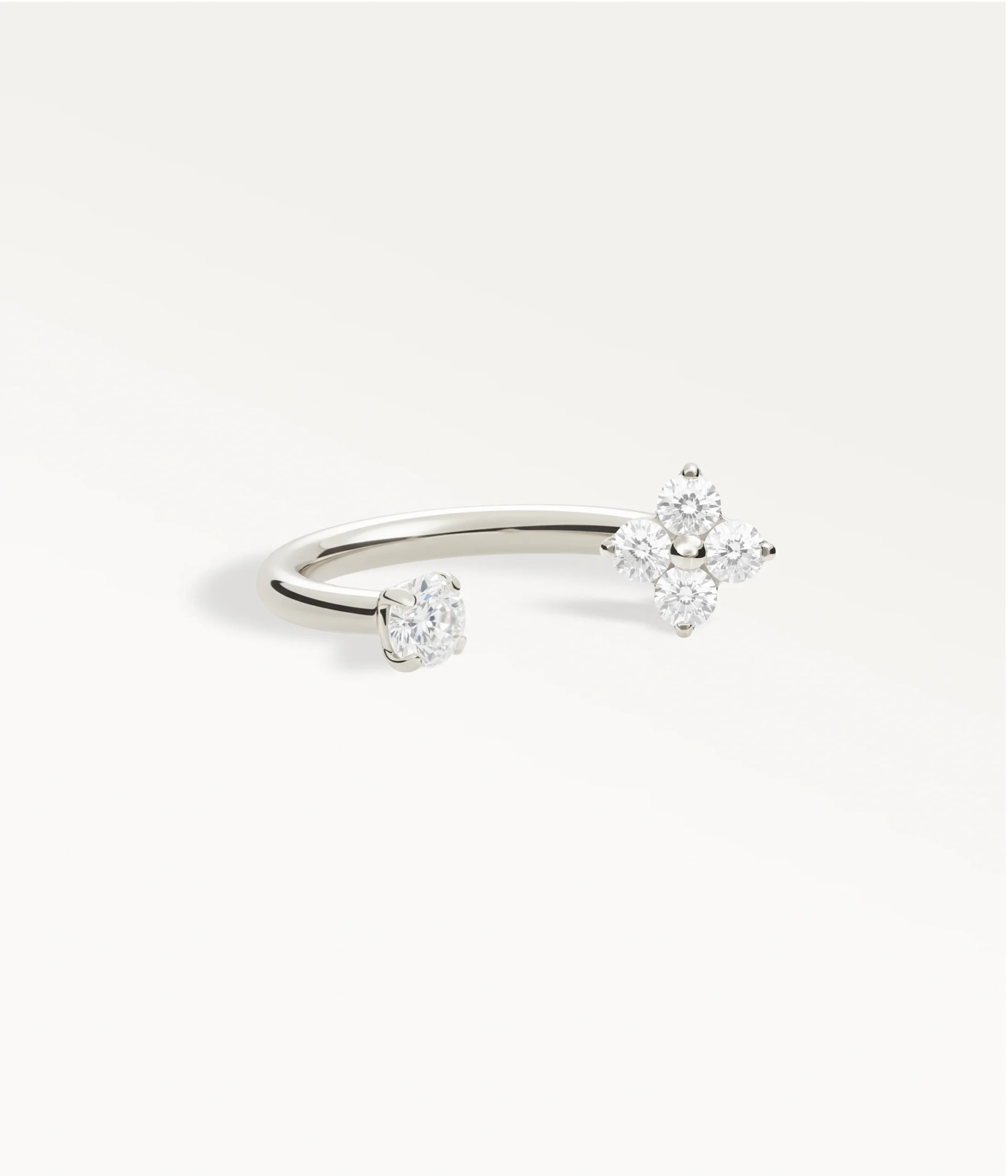 Sa forme de demi-anneau apporte du mouvement à la composition et crée l’illusion que le trèfle s’échappe délicatement de l’oreille, ajoutant ainsi une touche de dynamisme subtile et singulière.
