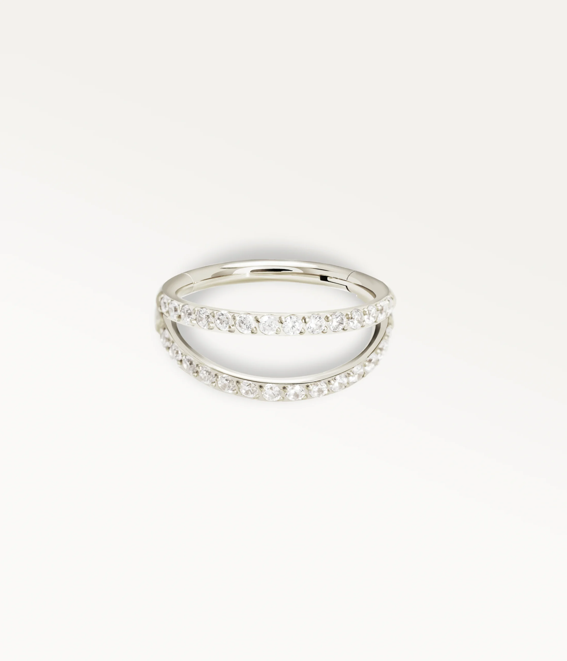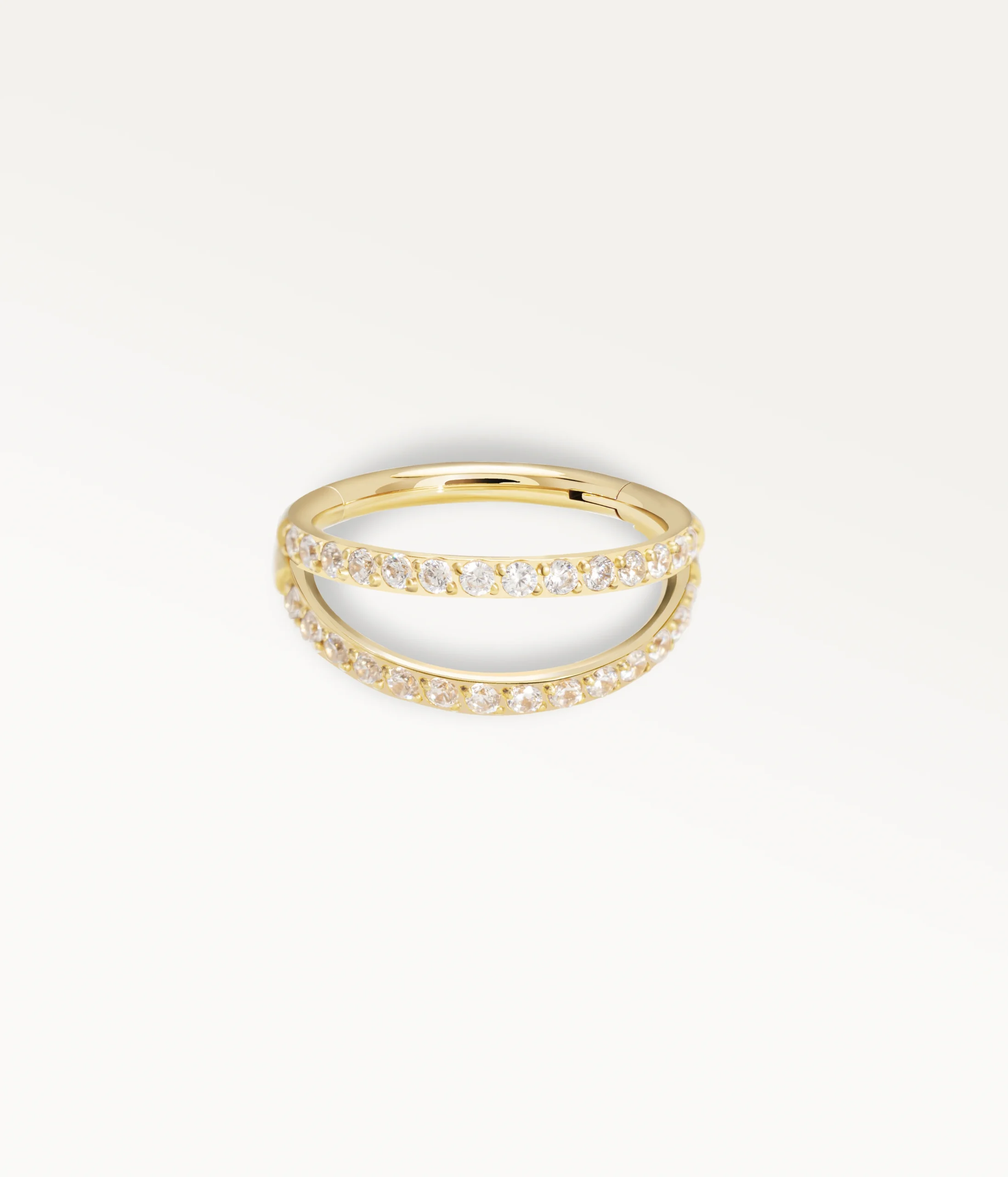 Illusion crée l’effet parfait de deux anneaux superposés… alors qu’il n’y en a qu’un. Son design ingénieux donne immédiatement de la structure et de la lumière à l’oreille, même avec peu de piercings.