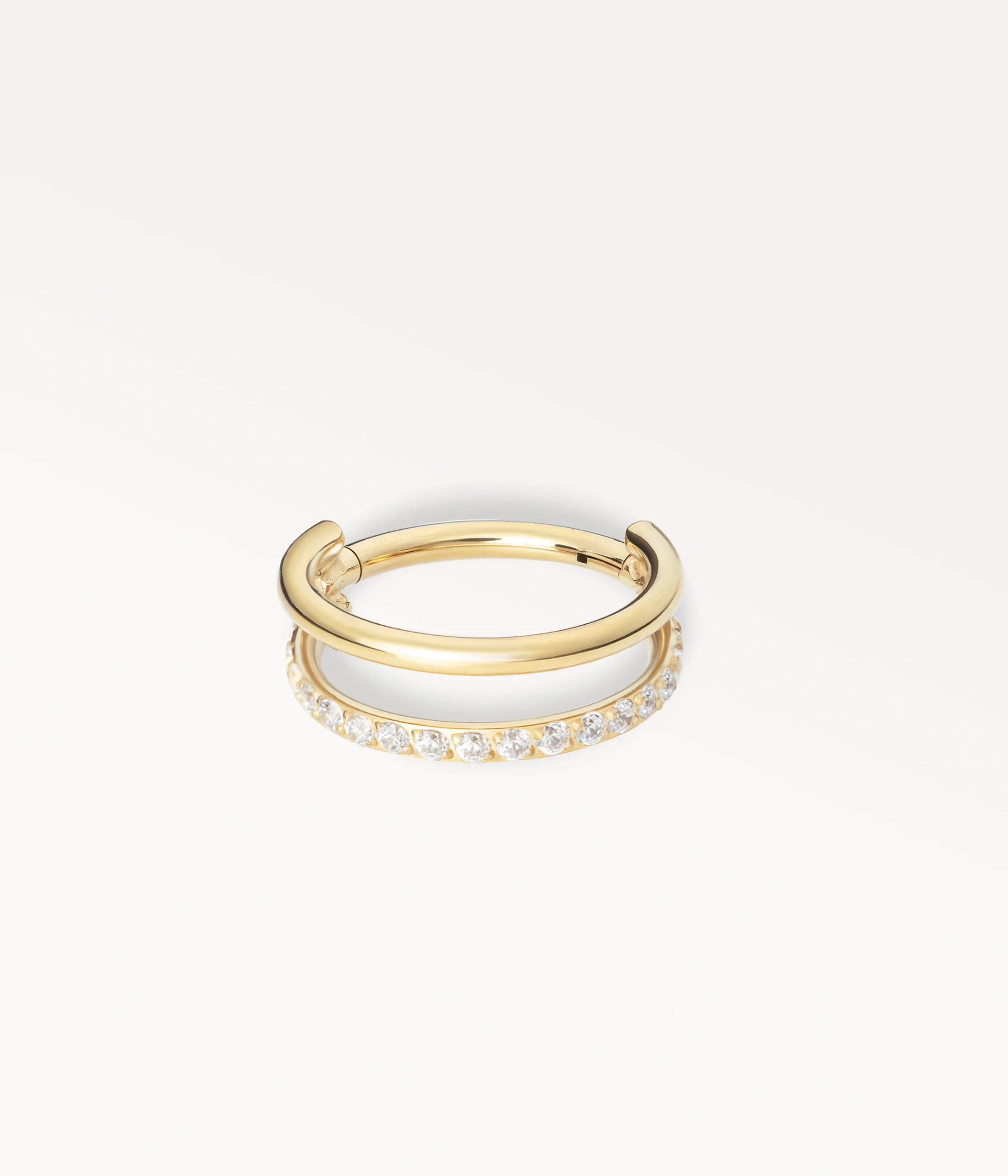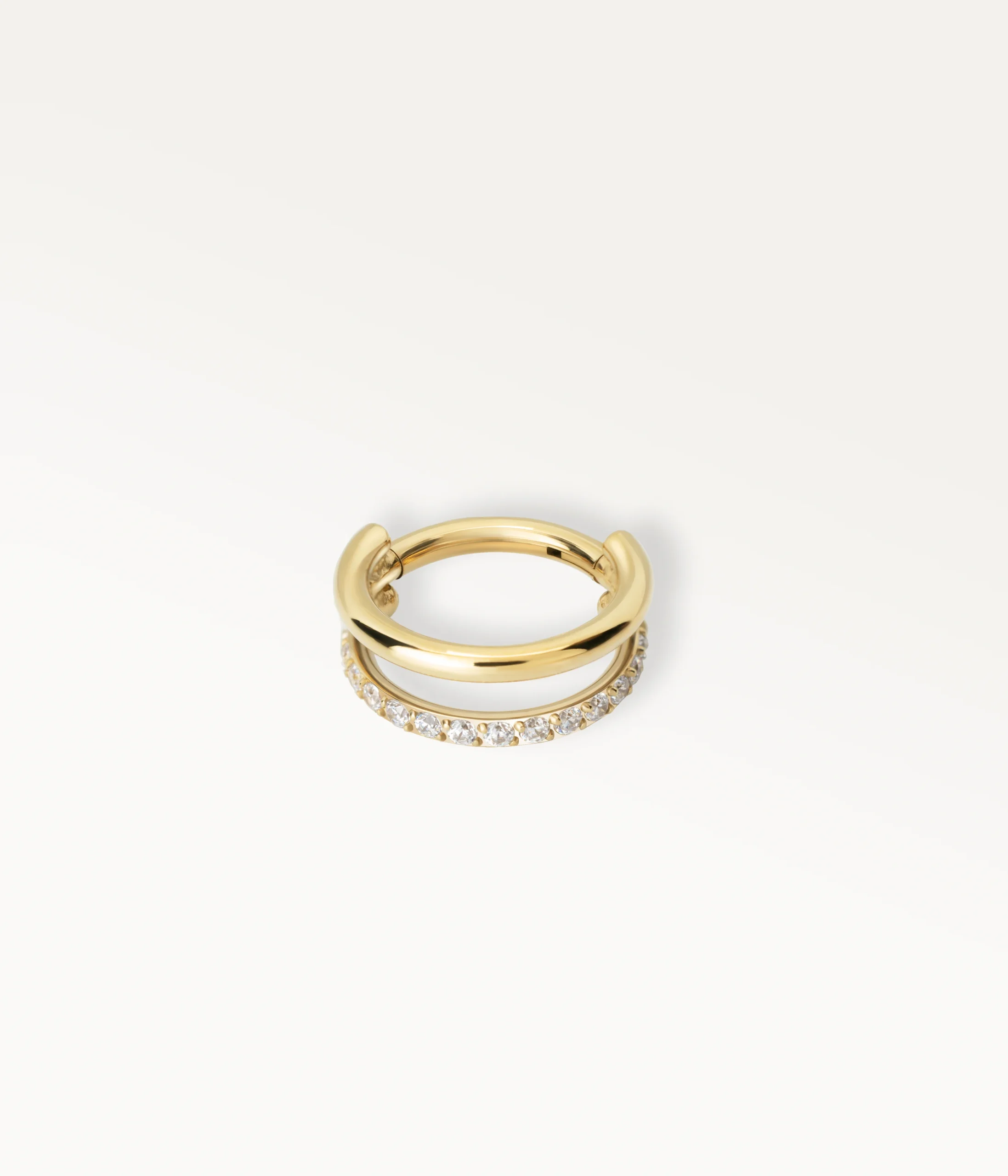 Piercing anneau double doré serti de zircons – packshot sur fond clairAliona Titane – piercing double anneau