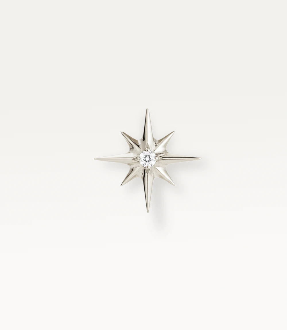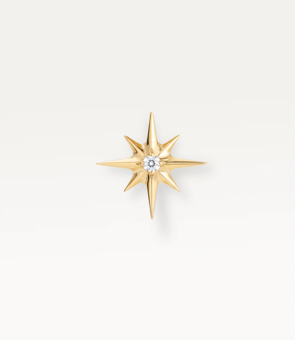 Astrée, c’est cette pièce qui vient réveiller une composition trop sage. Ses huit branches effilées et précises créent un jeu de lignes graphiques qui contraste parfaitement avec vos créoles et puces arrondies.