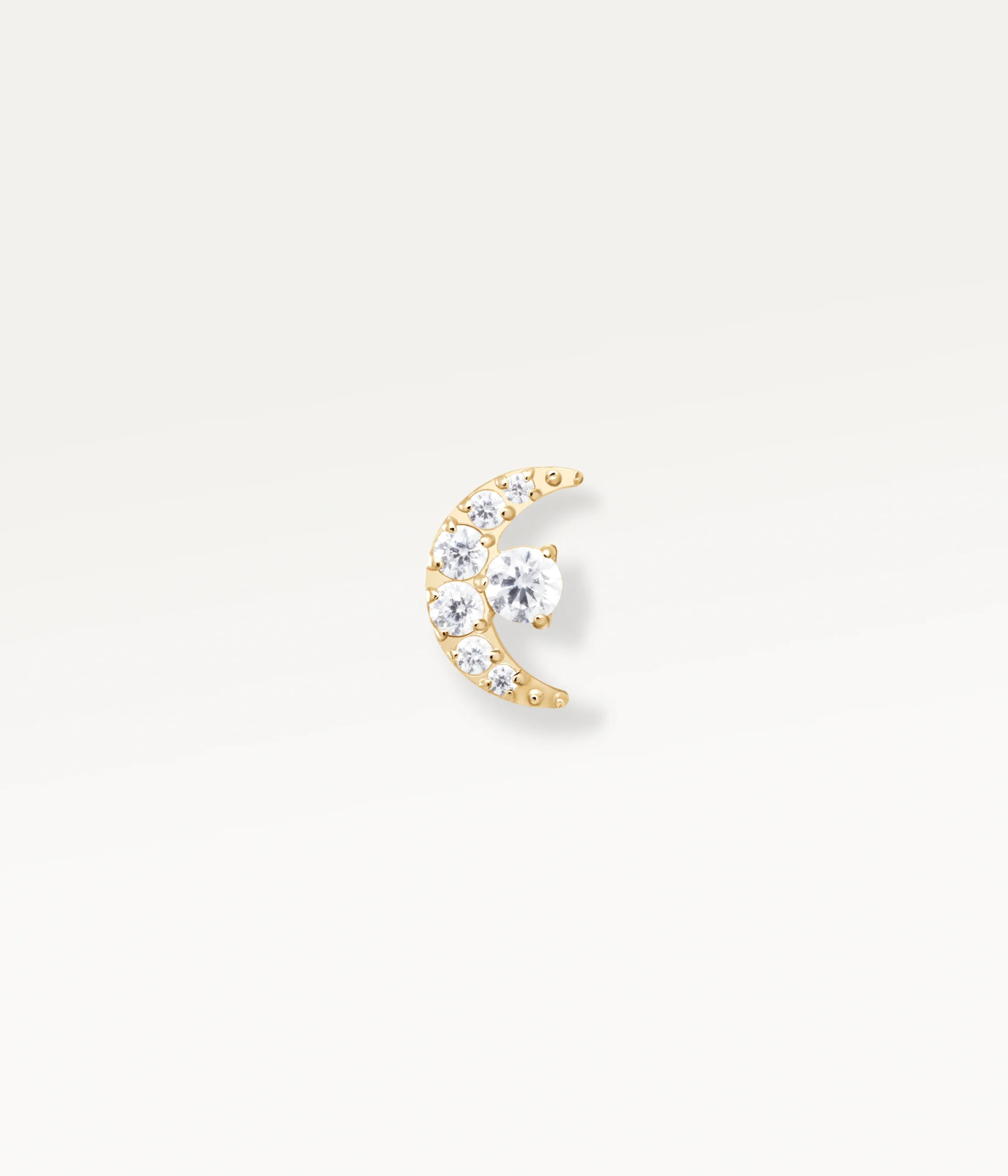Conseil composition : Sa forme de lune délicatement arquée épouse à merveille les courbes naturelles du tragus et du conch. Placé à ces endroits, Angèle se marie harmonieusement avec des anneaux dorés ou d’autres bijoux sertis de zircons pour un rendu équilibré et lumineux.