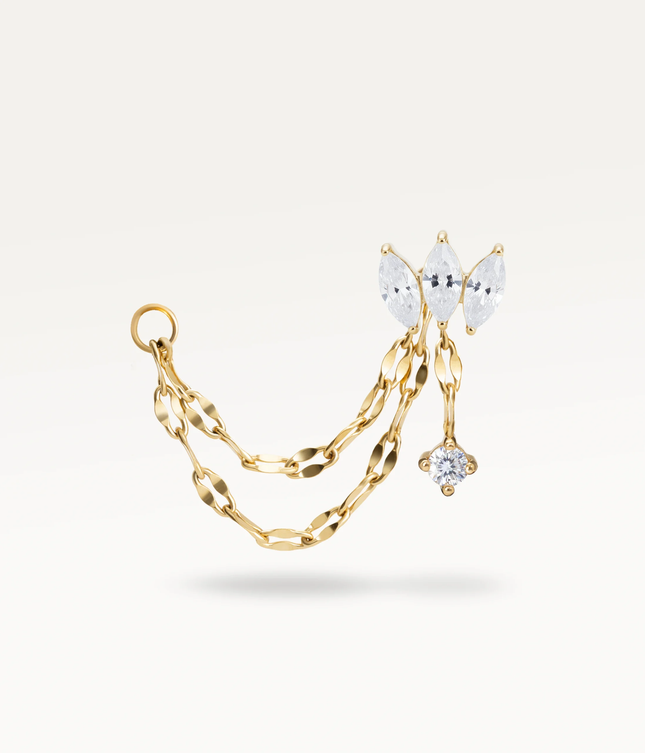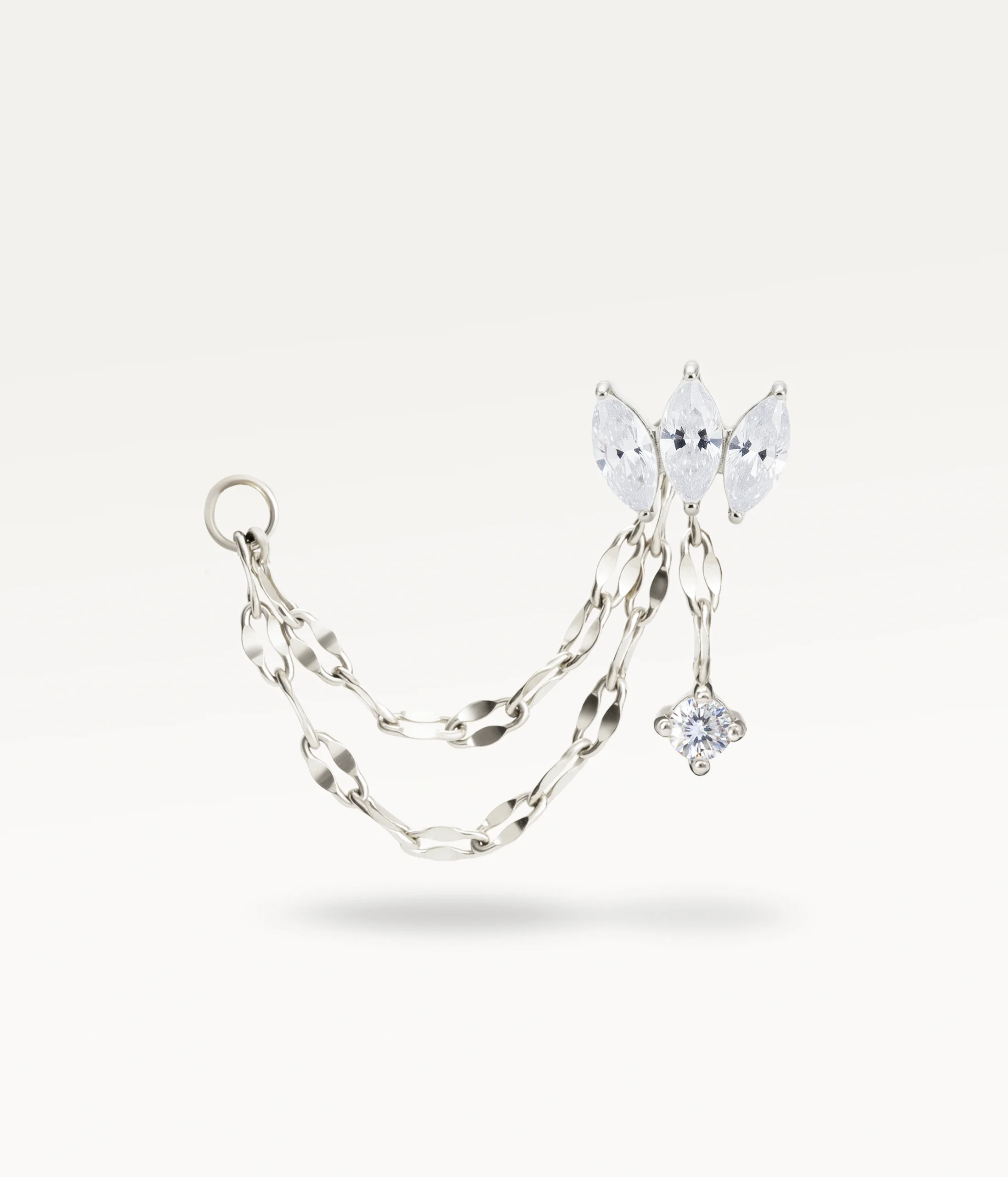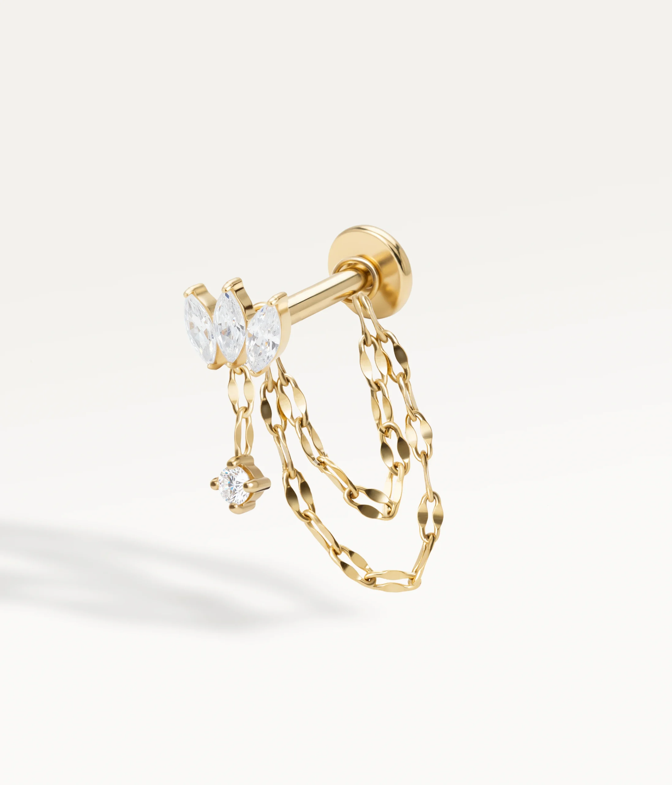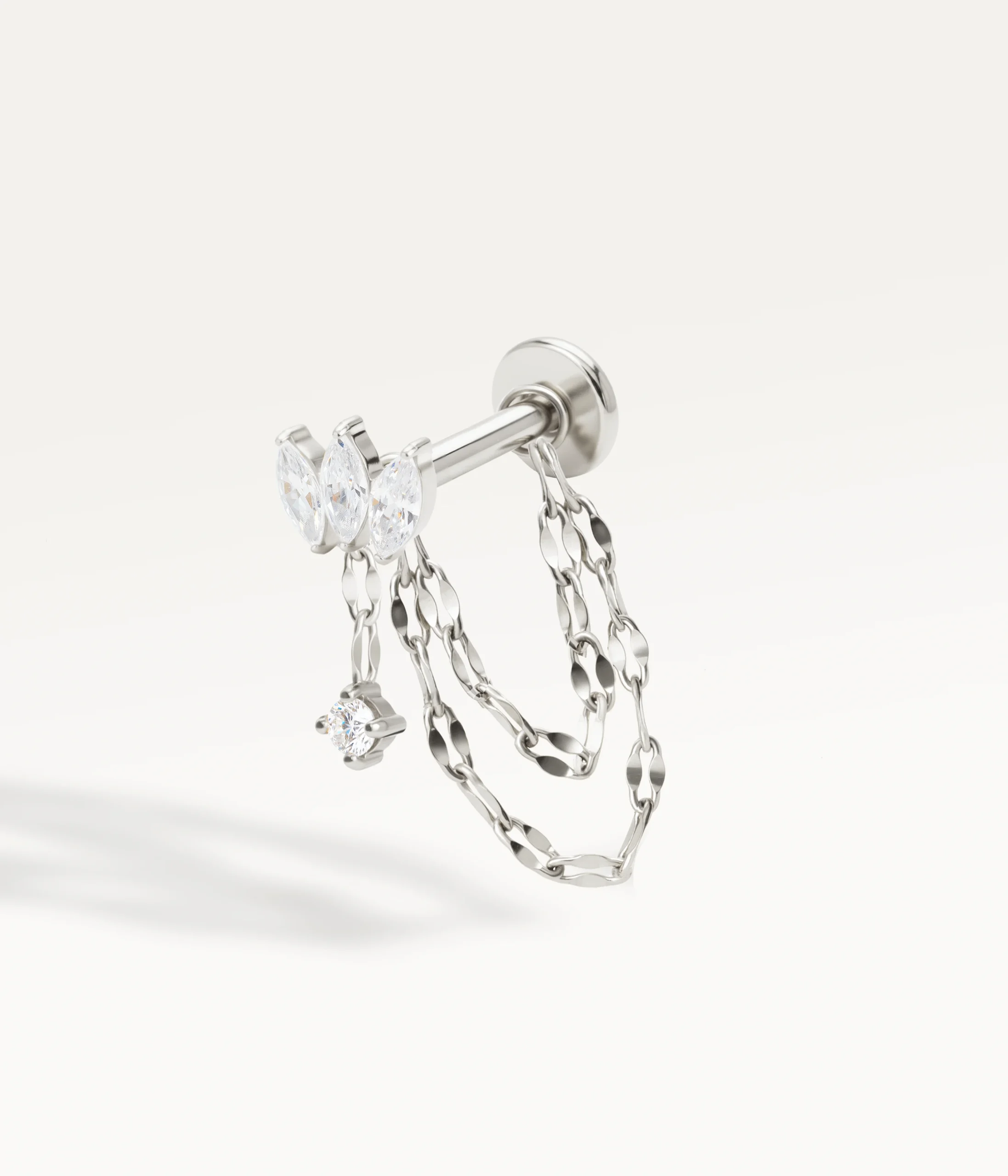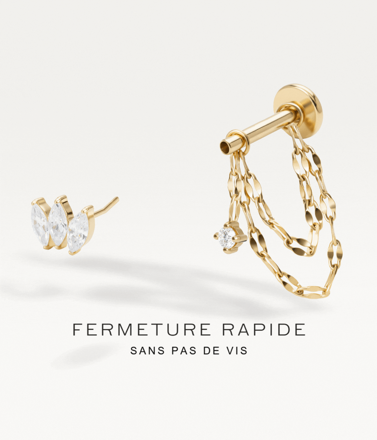 Loé est un stud avec une chaîne de 22 mm, ce qui le rend idéal pour créer une composition lumineuse et raffinée sans excès. Sa longueur limite son usage aux zones où la chaîne peut tomber naturellement.