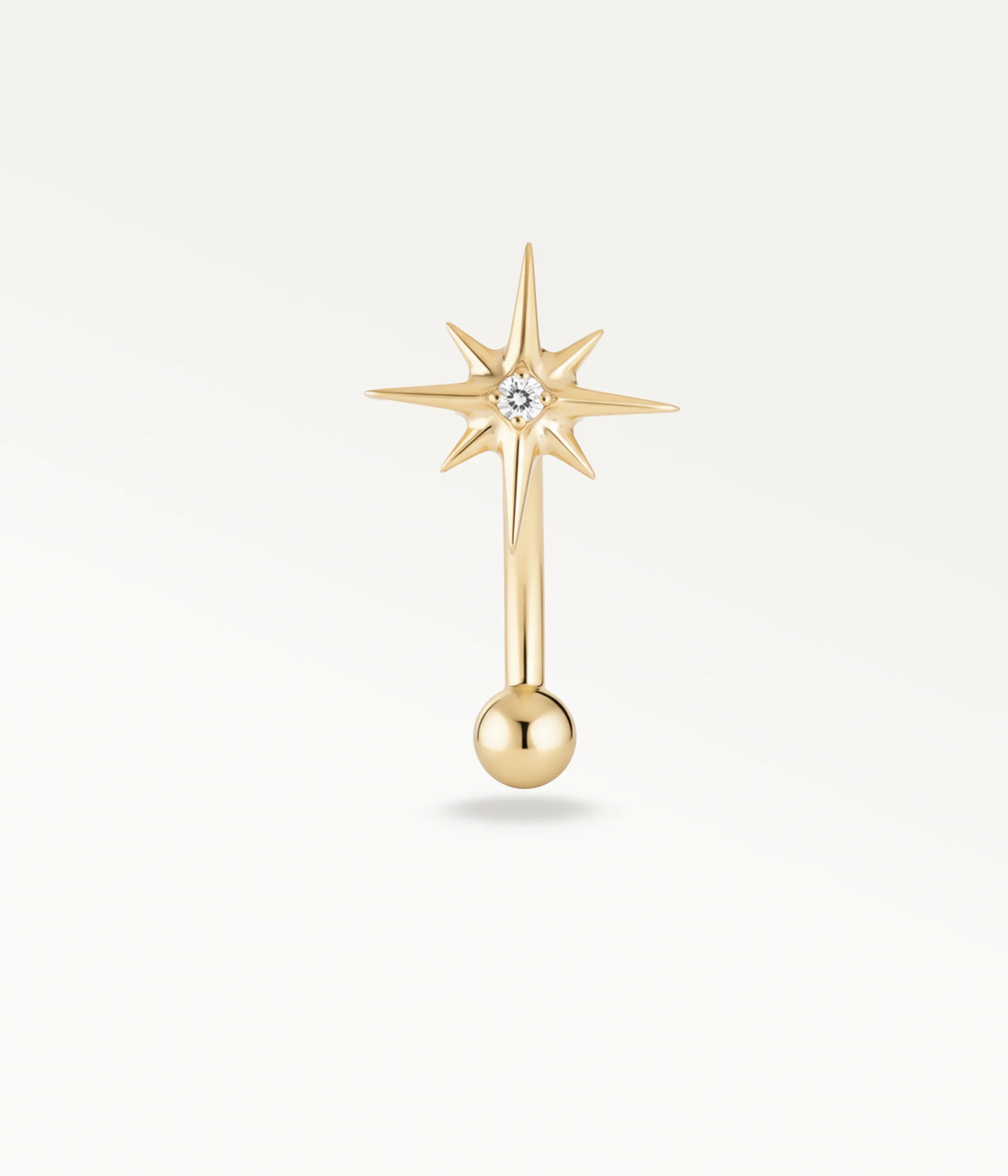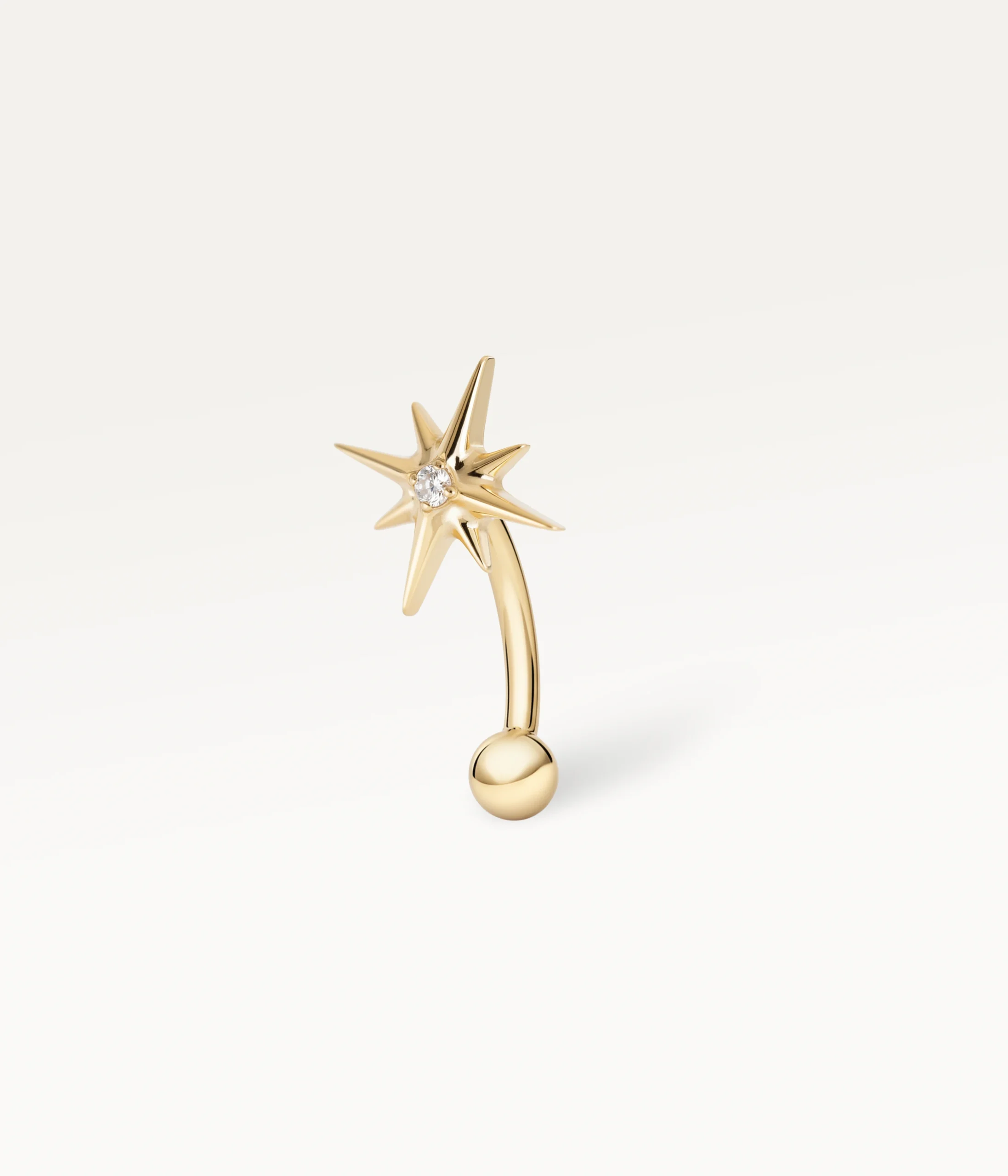 Belle Étoile est un piercing banane pensé pour habiller le rook avec caractère. Sa forme d’étoile, fine mais affirmée, capte immédiatement le regard et occupe harmonieusement le centre de l’oreille, créant un point de lumière unique dans votre composition.